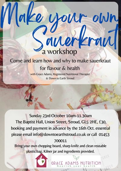 I am looking forward to a new partnership working with Down to Earth Stroud, a charity who support people in growing and harvesting their own fruit and vegetables as well as accessing fresh nutritious and healthy food. So all very close to my own heart. Call 01453 700011 or email info@downtoearthstroud.co.uk to book.